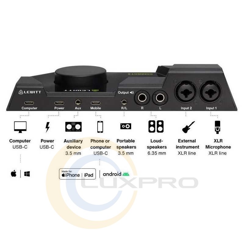 - ПЗ: LEWITT Control Center, Steinberg Cubase LE, Steinberg Cubasis LE;