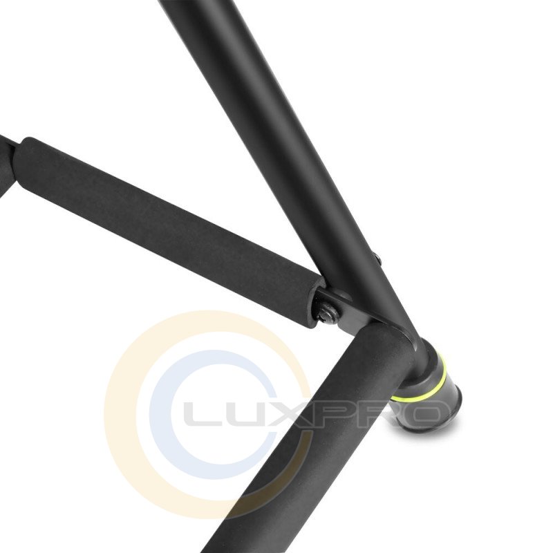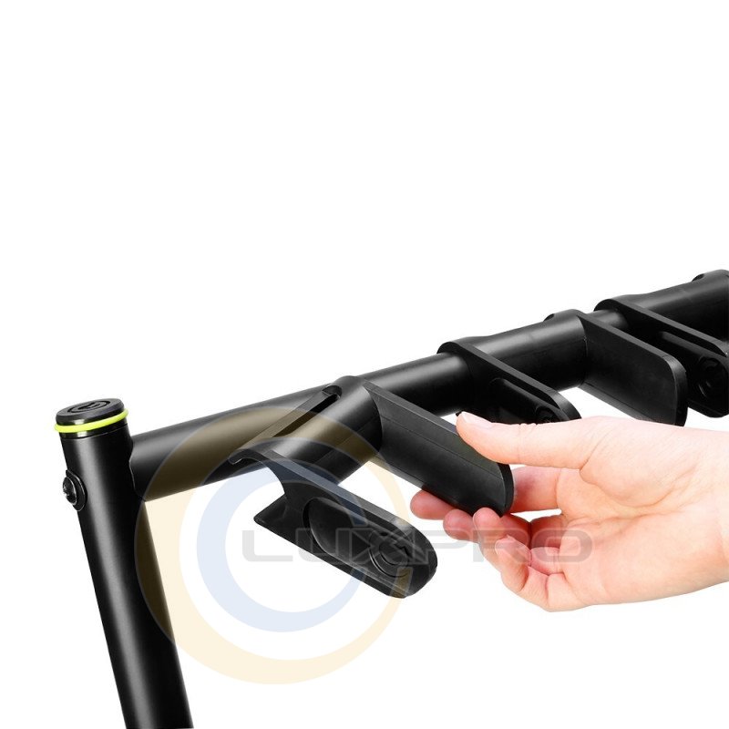 VARI®-G 3 - це стійка. Опорні труби покриті ПТУ підкладками, а хомути "шиї" гітари виготовлений із soft touch пластику, що забезпечує максимальну безпеку інструменту. У всіх стійках хомути для підтримки "шиї" гітари знімні, що при необхідності дозволяє розмістити менше інструментів. Стійки для гітар Gravity складаються в плоску форму для зручності транспортування та зберігання. Gravity VARI®-G 3 - стійка для 3 гітар, яка у складеному стані займає мінімум місця Ш x В x Г: 400 x 780 x 80 мм.