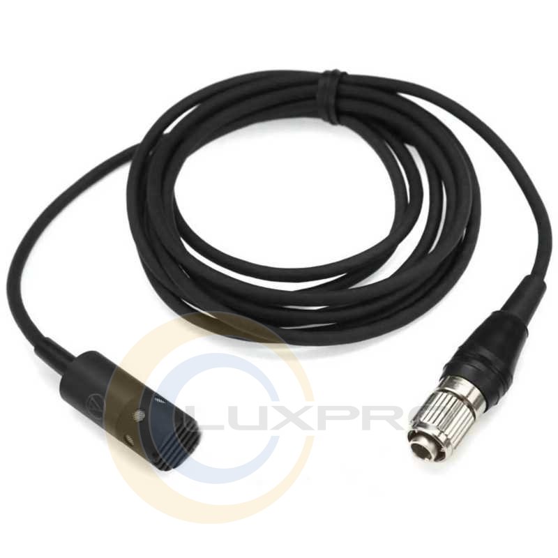 - кабель: 55" (1,4 м) у довжину (постійно підключений до мікрофону), 2,6 мм (0,10"), 2-жильний, екранований кабель з 4-контактним гвинтовим 4-контактним роз'ємом у стилі cH для бездротових передавачів Audio-Technica;