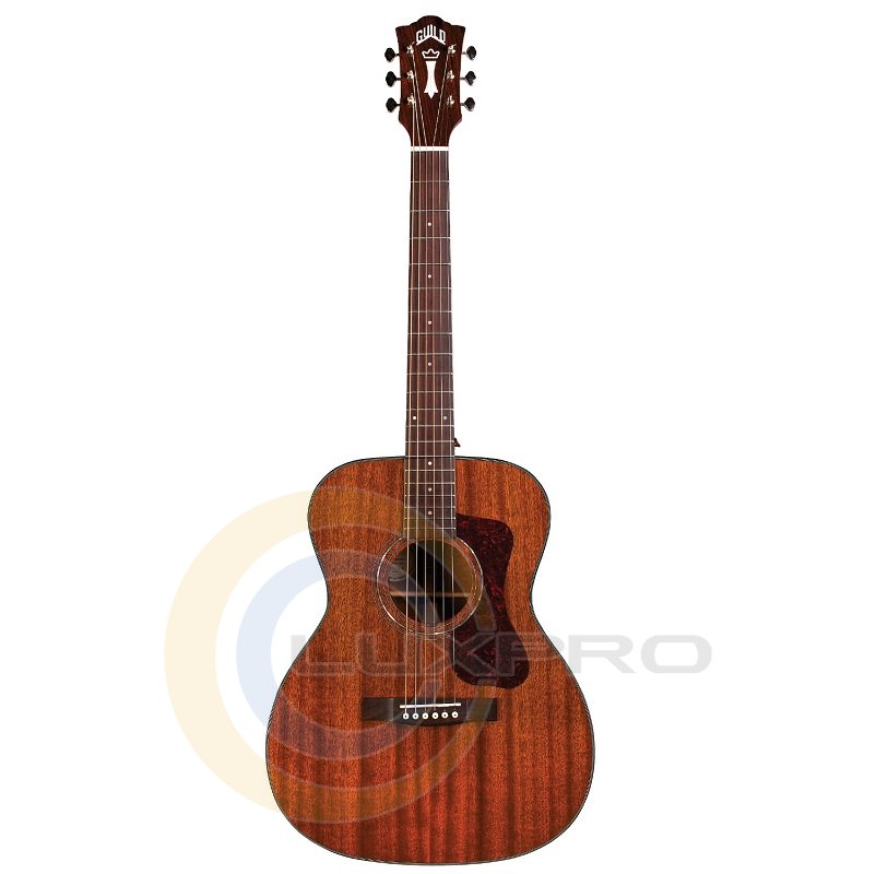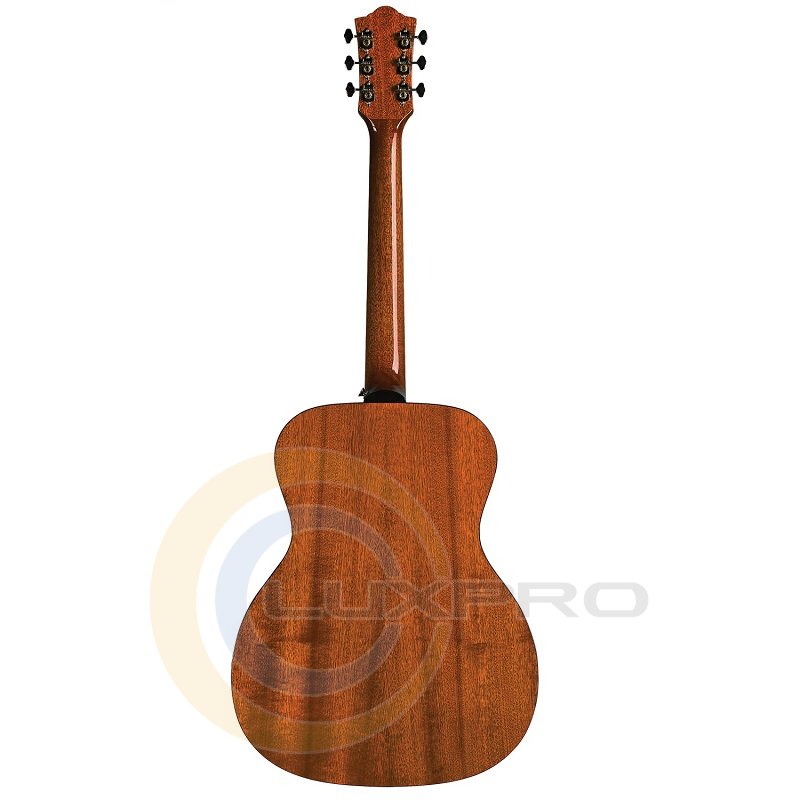 OM-120 NAT W/B - акустична гітара має верхню деку з цільного африканського червоного дерева, нижню деку та обичайку з цільного африканського червоного дерева. Інші особливості преміум-класу включають кістяні поріжки та перламутрову декорацію розетки.