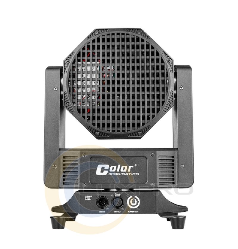 Він відрізняється чудовим змішуванням кольорів, безшумною роботою та контролем без мерехтіння. Прилад вбудований з різними динамічними внутрішніми ефектами зі змінною швидкістю. Рухлива головка також має оптимальну оптичну конструкцію, інтегровану із надзвичайно ефективною системою алюмінієвого радіатора.