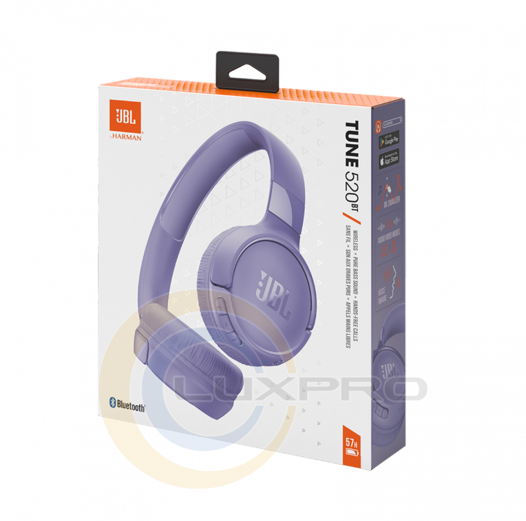 Навушники TUNE 520 BT (JBLT520BTPUREU). Скачайте безкоштовний додаток JBL Headphones, щоб налаштувати звук на свій смак за допомогою еквалайзера. Голосові підказки допоможуть вам ознайомитися з функціями Tune 520BT. Слухайте улюблену музику до 57 годин і заряджайте акумулятор за 2 години за допомогою зручного кабелю типу USB-C. Швидка 5-хвилинна зарядка дозволяє насолоджуватися музикою ще 3 години.