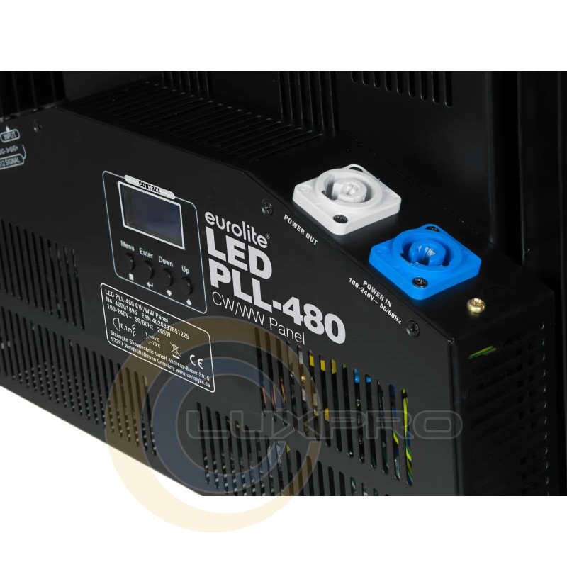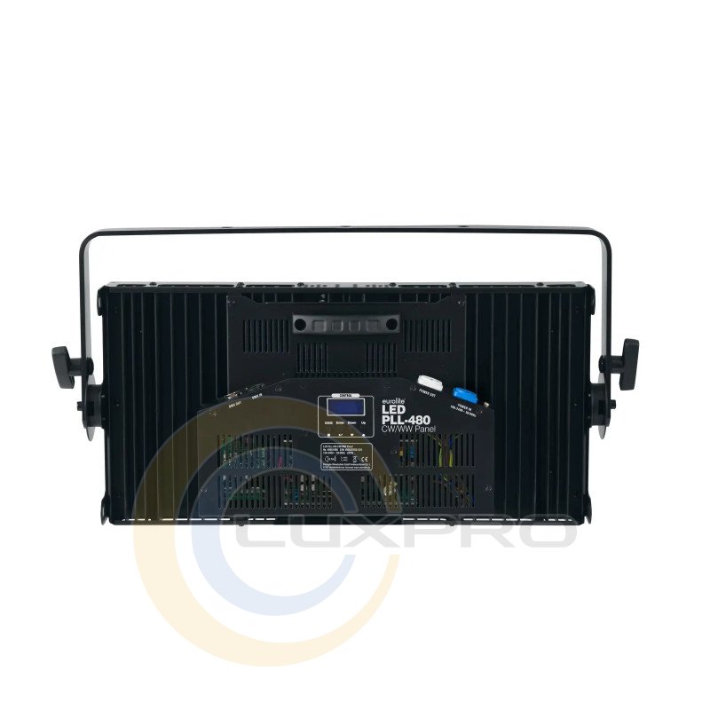 Світлодіодна панель з DMX-керуванням, що складається з 240 світлодіодів холодного білого та 240 світлодіодів теплого білого кольору з плавним регулюванням колірної температури в діапазоні від 3200 K до 5600 K. Високоякісна поверхня з 480 суперяскравими білими світлодіодами ідеально підходить для фотозйомки, кіно, театрального та виставкового освітлення. Енергозберігаючий, міцний та екологічно чистий. Розсіювач забезпечує плавне та м'яке безперервне освітлення без мерехтіння.