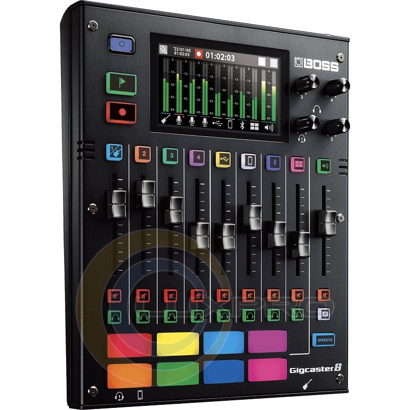 Мікшерний пульт GCS-8 Gigcaster. Підключіть гітару або бас-гітару та грайте з підсилювачами та ефектами флагманського рівня GT. Підключайте мікрофони та обробляйте голоси за допомогою студійної обробки серії VE. Або підключіть клавіатуру або драм-машину, використовуючи лінійні входи. Ви можете мікшувати загалом вісім джерел під час потокової передачі, включаючи фонову музику та звук від віддаленого гостя чи студента. Додаючи підтримку зовнішнього управління, запис на носій microSD та багато іншого, Gigcaster 8 є важливим партнером для музичних виконавців, віддалених викладачів, подкастерів та всіх, хто створює музичні медіа.