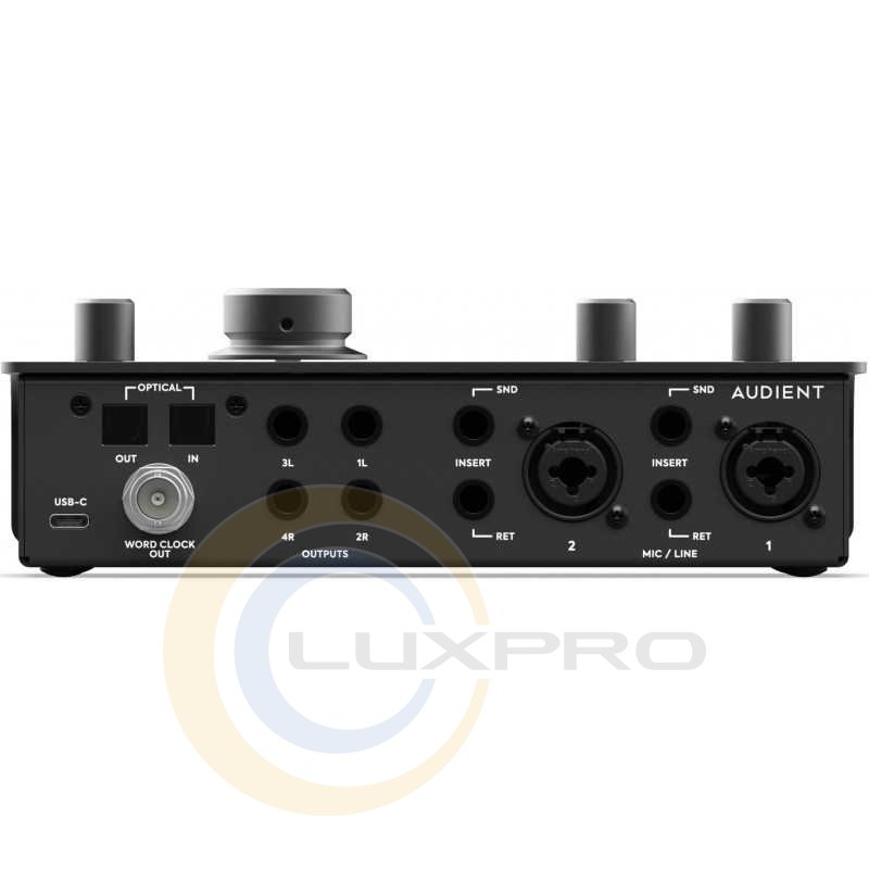 - аналогові роз'єми: 2 x Combo XLR-1/4" 3-Pin Mic/Line Input, 1 x 1/4" TS Unbalanced Hi-Z Input (Front Panel), 2 x 1/4" TRS Balanced Insert Send, 2 x 1/4" TRS Balanced Insert Return, 4 x 1/4" TRS Balanced Monitor Output, 1 x 1/4" TRS Headphone Output (Front Panel), 1 x 1/8" / 3.5 mm
