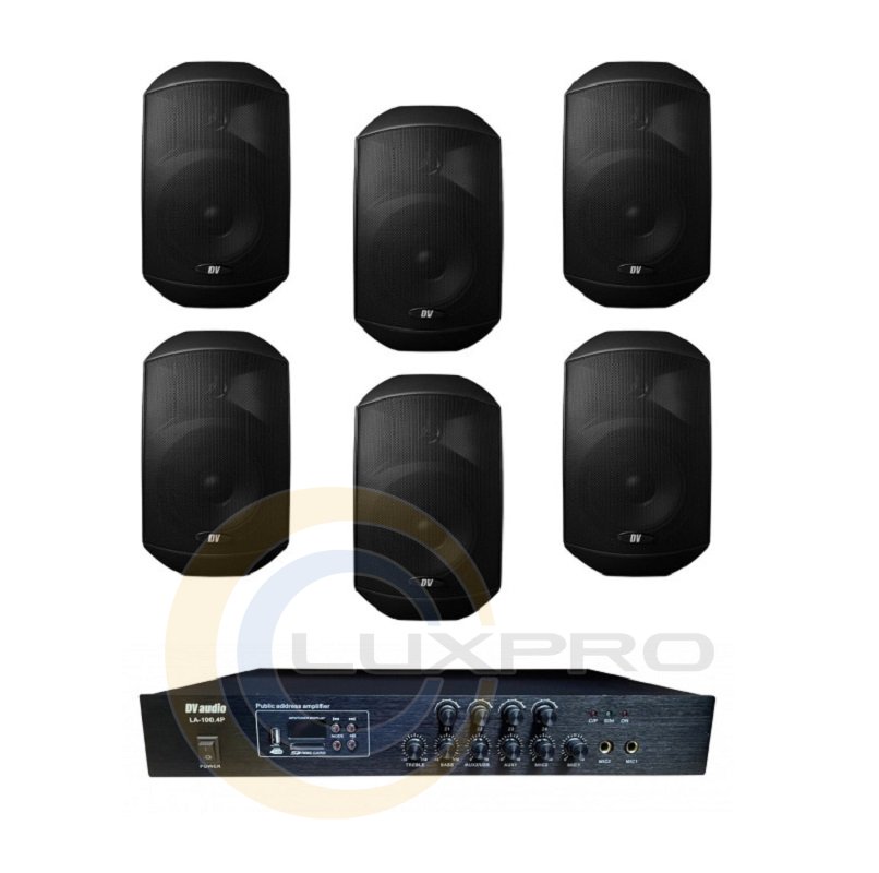 Акустичний комплект LA1006MS5B. Двосмугова акустична система DV audio MS-5.2T IP Black. Акустична система призначена для передачі музики та мовного сповіщення у приміщеннях ресторанів, торгових центрів, кафе, готелів, офісів, спортивних клубів.