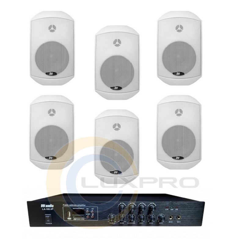 Акустичний комплект LA1006MS5W. Двосмугова акустична система DV audio MS-5.2T IP White. Акустична система призначена для передачі музики та мовного сповіщення у приміщеннях ресторанів, торгових центрів, кафе, готелів, офісів, спортивних клубів.