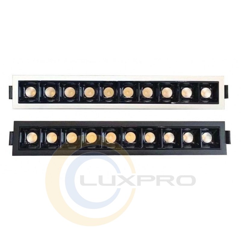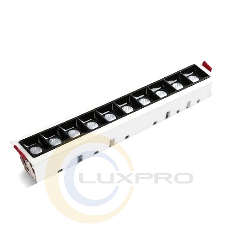 GRILLE-10 WH - світильник. Корпус світильника виготовлений з алюмінієвого сплаву, оптика розсіює промінь світла під кутом 15 або 45°. Світильник можна купити з температурою світла в 3000К (тепле біле світло) або 4000К (нейтральне біле світло). Блок живлення розміщений в корпусі світильника, тому на нього необхідно подати звичайні 220В, потужність приладу - 20 Вт. Якісні світлодіоди від світового бренду Osram не тільки дозволяють отримати яскраве світло при мінімальних витратах на електроенергію, але і чудово передають кольори, тому що показник кольоропередачі становить >90.
