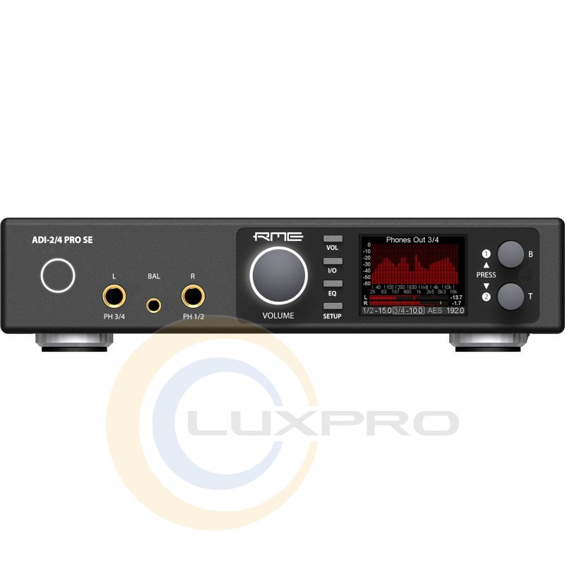 На передній панелі розташовані два стереовиходи для навушників Extreme Power для зручного балансного підключення всіх навушників, у тому числі IEM через роз'єм Pentaconn 4,4 мм. Підсилювач для навушників має такі характеристики: небалансний вихід 2,1 Вт і балансний вихід 3,4 Вт при 32 Ом на канал. Крім того, повідомляється, що в режимі True Balanced максимальний вихідний рівень ADI-2/4 Pro SE підвищується до +7 dBu для IEM, +13 dBu для Low Power і +25 dBu для High Power.