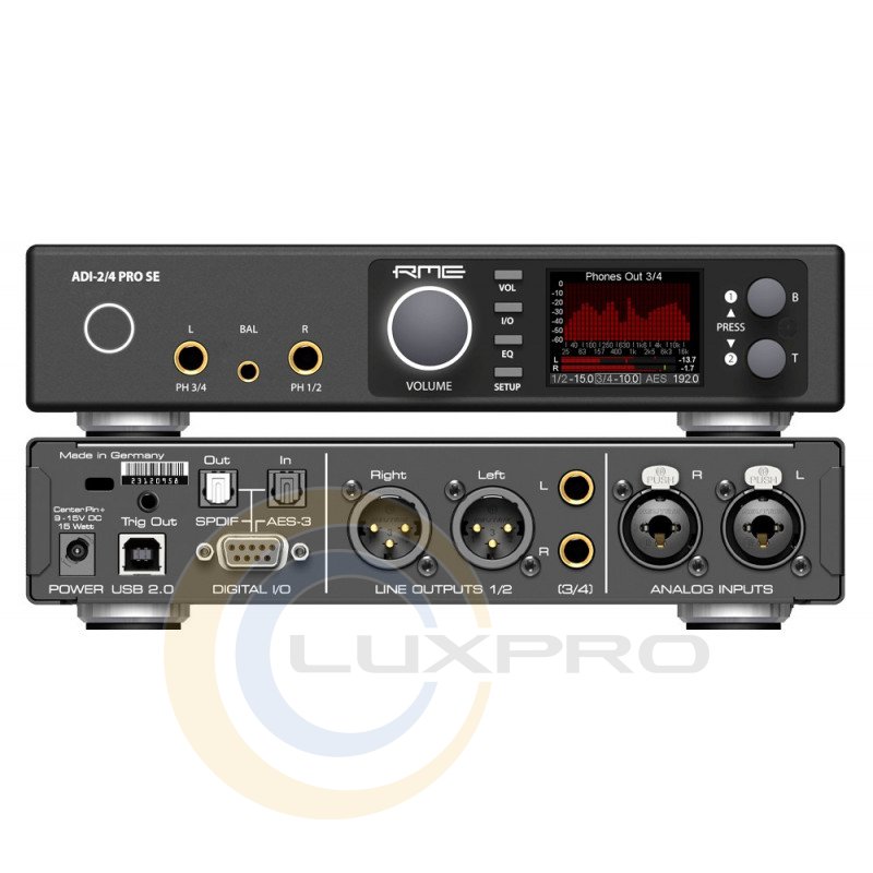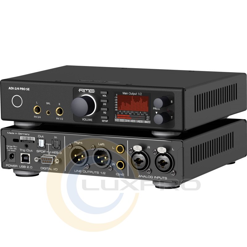 Крім того, RME ADI-2/4 Pro SE має режим RIAA для прямого оцифрування вінілових платівок з високою якістю, а також може бути ефективним рішенням для запису/відтворення DSD або задіяний як комп'ютерний звуковий USB інтерфейс. Для аналогового входу/виходу на задній панелі девайса є пара комбінованих входів XLR/TRS, пара виходів XLR, пара виходів TRS та Trig Out.