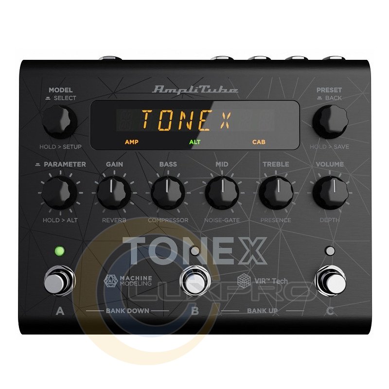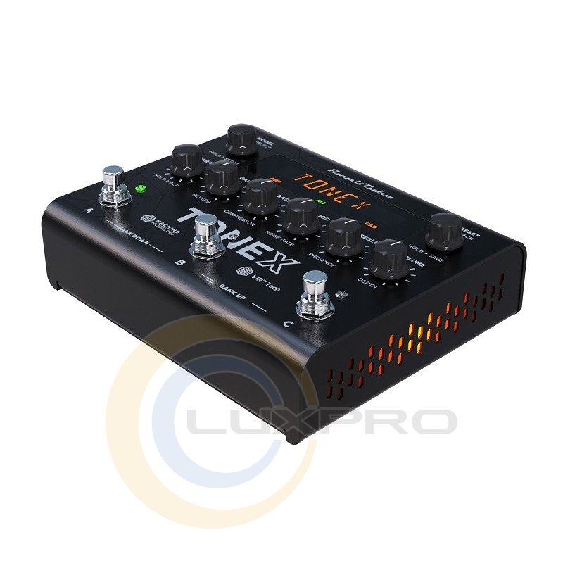Інноваційна технологія TONEX дозволяє користувачам моделювати все, від однієї педалі до повноцінного клуня з підсилювачем і кабінетом. TONEX Pedal йде ще далі, надаючи всі інструменти, необхідні створення живого звуку на сцені. Педаль може завантажувати 150 окремих пресетів моделі тону у будь-якій комбінації моделей педалі, підсилювача та всього обладнання. Користувачі також можуть завантажувати та замінювати свої власні IR або використовувати відзначений нагородами кабінет IK з множинною імпульсною характеристикою VIR™ та вбудовану технологію імітації мікрофона, п'ять стереоревербераторів, отриманих від відзначеної нагородами педалі AmpliTube X-SPACE, та багато інших.