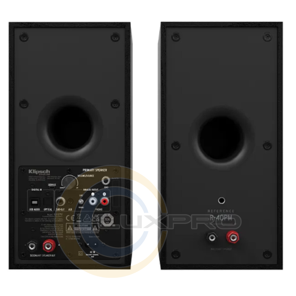 Для підключення до підсилювача передбачені лінійний, оптичний, USB входи та Bluetooth. Завдяки вбудованому якісному підсилювачу Klipsch R-40PM є універсальною моделлю, що не вимагає фонокорректора, тощо. Завдяки її самодостатності модель можна використовувати з телевізором для перегляду фільмів, щоб стримувати музику, грати в ігри і т.д. Також є можливість додаткового під'єднання сабвуфера. Це чудовий варіант для озвучування невеликих кімнат.