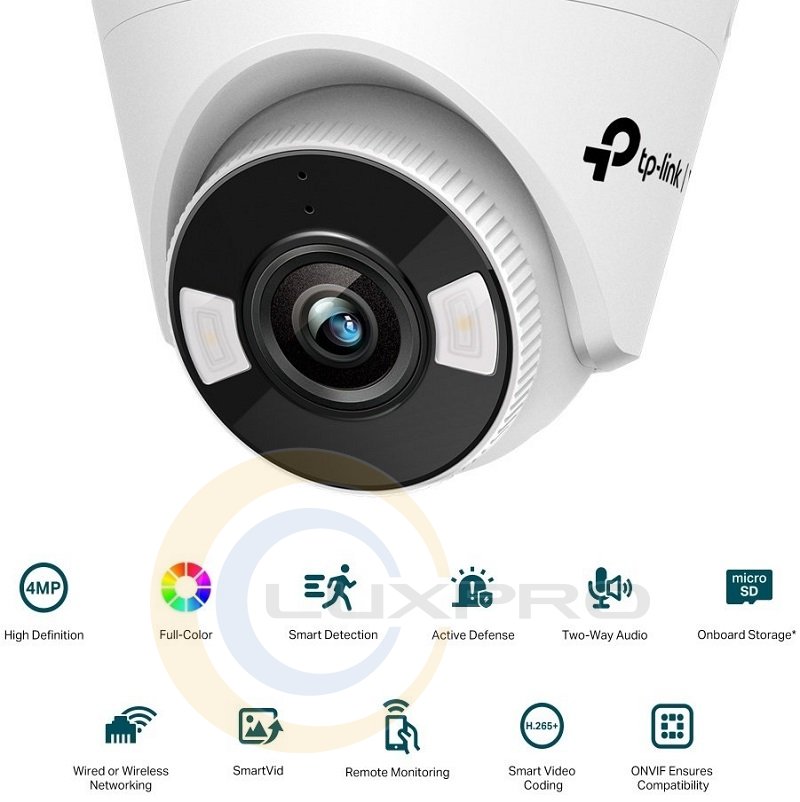 VIGI C440-W-4, PoE, 4Мп, 4 мм, Wi-Fi, H265+, IP66, Turret - камера. Отримуйте повідомлення, коли хтось перетинає лінію, входить у вказану зону, що охороняється, або загороджує камеру. Звукова та світлова сигналізації допоможуть відлякати непроханих гостей.