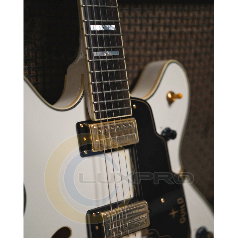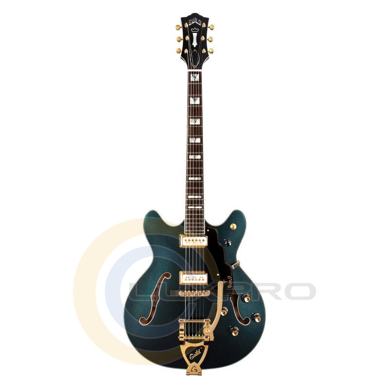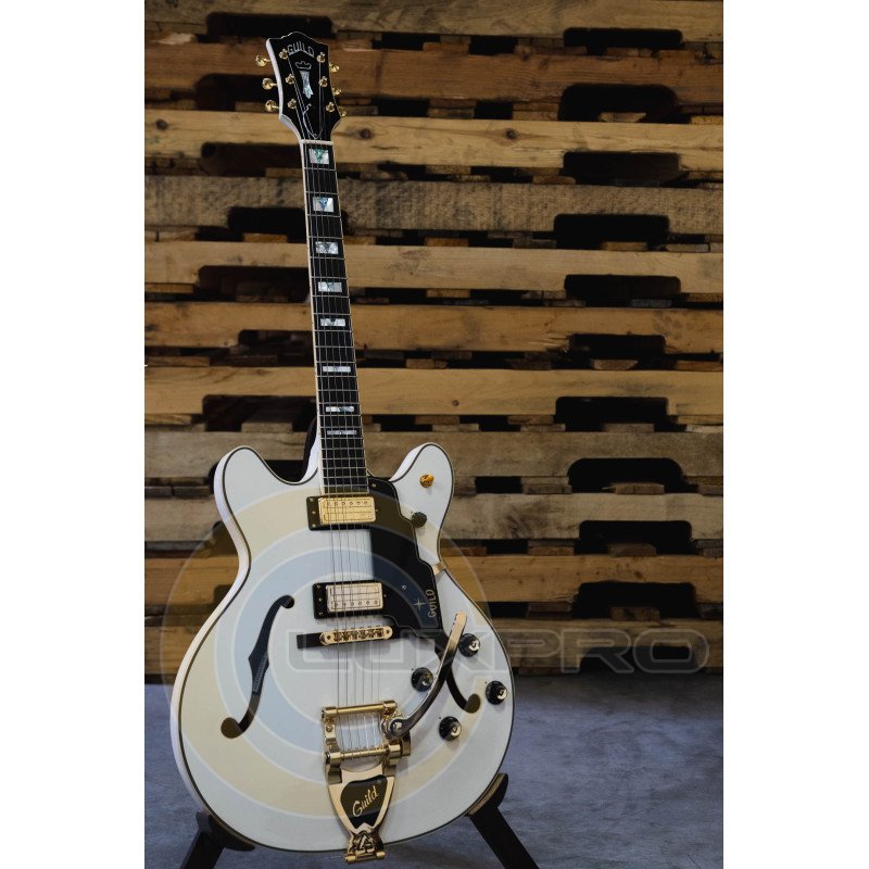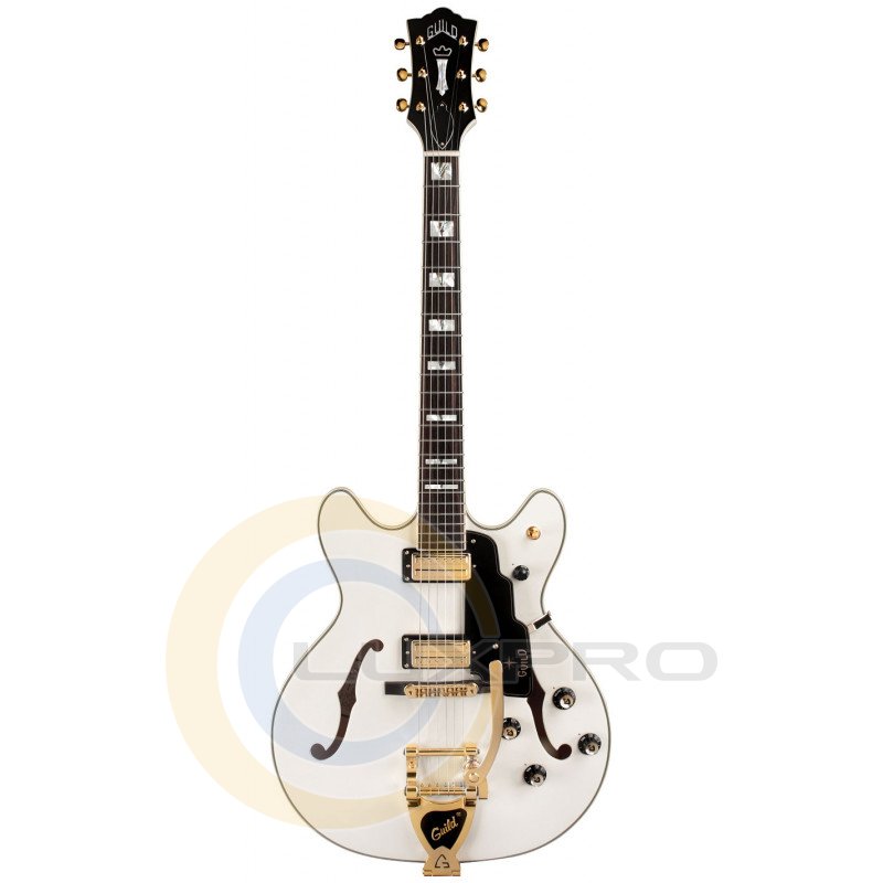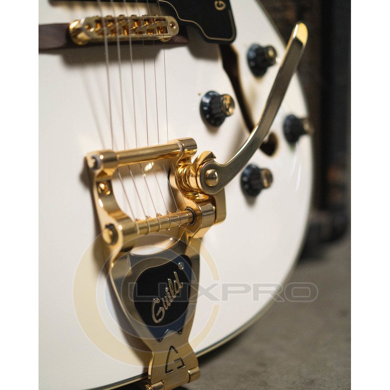 - бридж: Guild Vibrato Tailpiece (Aluminum) + Tune-O-Matic з основою із чорного дерева;