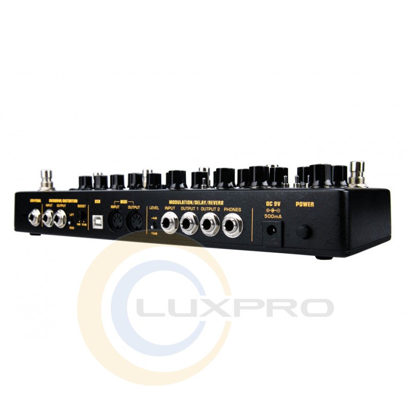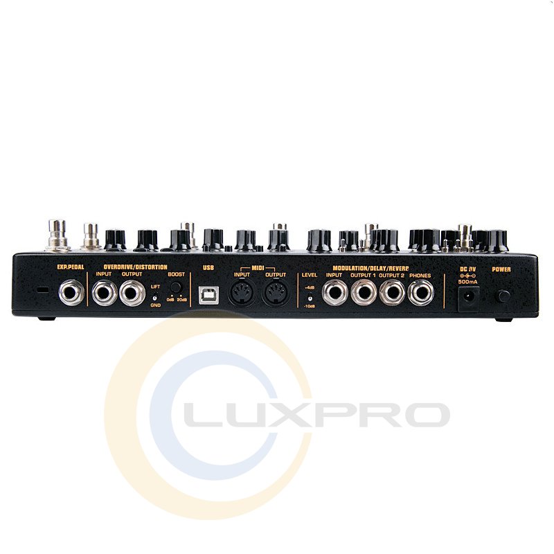 - роз'єми: 1 x USB-B, 1 х Midi In, 1 x Midi Out, блок Mod/Reverb/Delay c 4 х jack 1/4" (Input, Output 1, Output 2, Phone), блок Overdrive/Distortion з 2 х jack 1/4 "(Input, Output), роз'єм для підключення футсвіту jack 1/4";