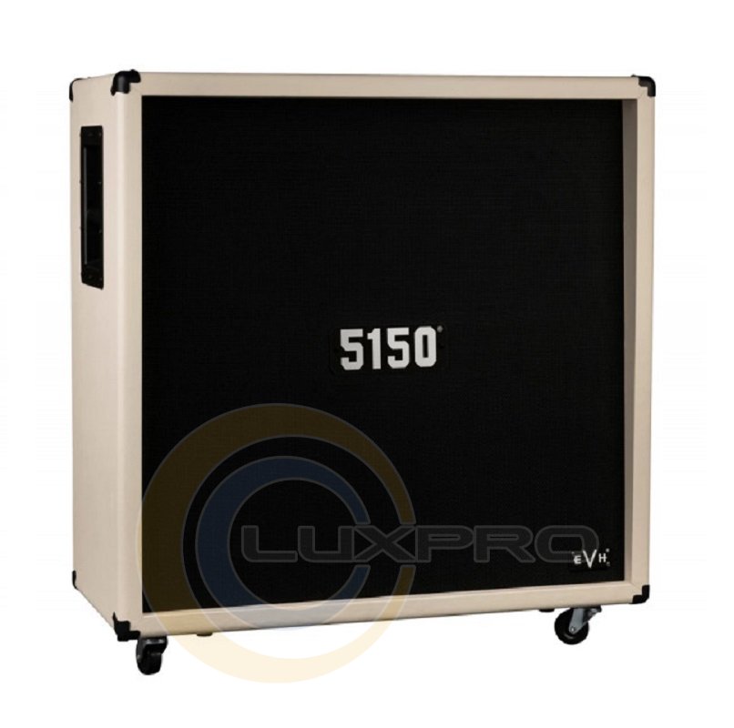 Він виготовлений із МДФ зі спеціальною внутрішньою перегородкою із фанери для щільного та посиленого басового відгуку. У ньому розміщені 4 кастомні динаміки 12" EVH Celestion Custom, озвучені спеціально для цієї схеми передусилля, так що чисті клинці і жорсткі високогейнові тони залишаються чіткими і точними. Кабінет виконаний в характерному стилі EVH: щільний текстурований вініл кольору слонової кістки, сріблястими та чорними логотипами 5150 та EVH.