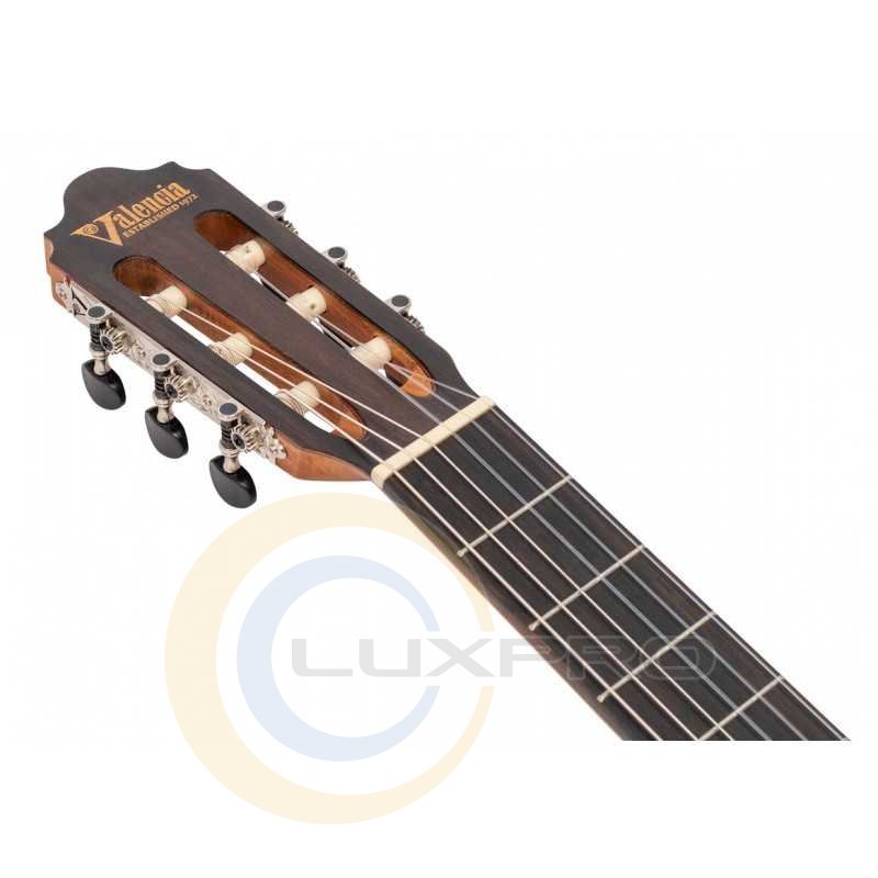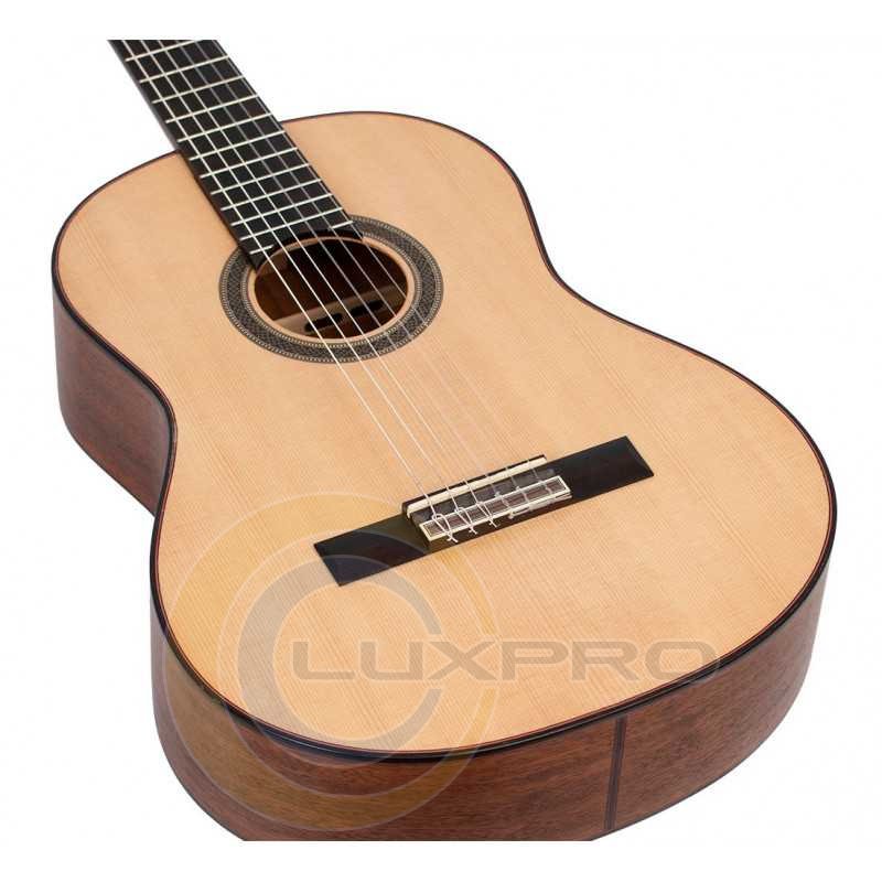 VC704 - класична гітара, розмір: 4/4, мензура: 650 мм (25 5/8”), ширина верхнього порожка: 52 мм (2 1/16”), матеріал верхньої деки: цільна ялина, задня дека та обичайка: червоне дерево, окантовка топа: палісандр - 4 мульти шари, окантування задньої деки: палісандр - 3 мульти шари, центр. смуга задньої деки: палісандр – 5 мульти шарів, облицювання головки грифа: чорне дерево – 3 шари, гриф: червоне дерево із вставкою чорного дерева, накладка грифа та бридж: чорне дерево, задня частина п'яти грифа: чорне дерево – 3 шари, поріжок бриджа : Graph Tech NuBone XB, лади: 19 шт., нікель, колки: нікельовані з матовими чорними капелюшками, струни: США, покриття: матове, колір: Natural.