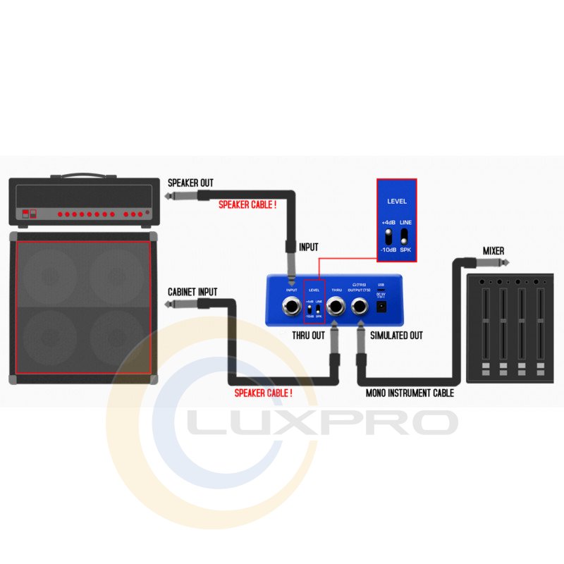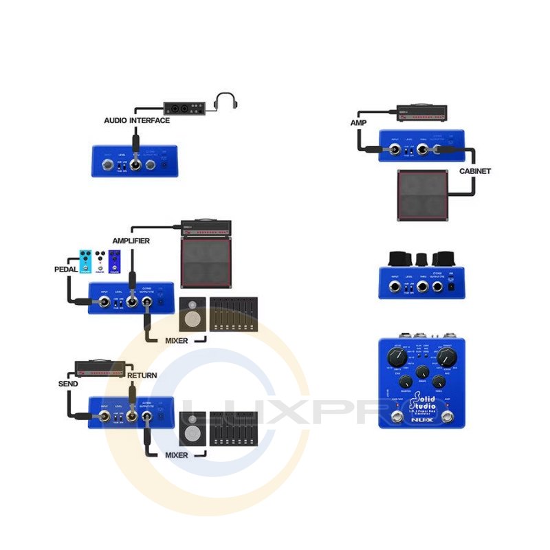 Багатофункціональні з'єднання Solid Studio включають моновхід TRS з регулюванням рівня (-10 дБ/+4 дБ) і три вихідні шляхи: стерео, DI OUT і обхідний «THRU». Завдяки їм у вас є можливість використовувати NSS-5 як симулятор підсилювача в кінці ланцюжка ефектів вашого педалборда або направити сигнал від підсилювача потужності підсилювача через нього на шляху до гітарного кабінету. Використовуйте DI OUT для надсилання сигналу імітації динаміка на акустичну систему або інтерфейс USB. Таким чином, ви можете легко посилити свій виступ без використання мікрофонів або використовувати Solid Strudio як ді-бокс з емуляцією кабінету для запису в студії.