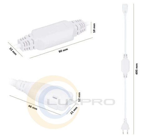 Кабель PROLUM™ для підключення стрічки СОВ 220V - 12 ММ.