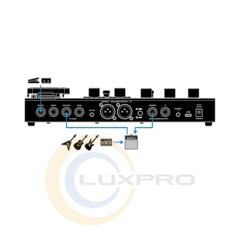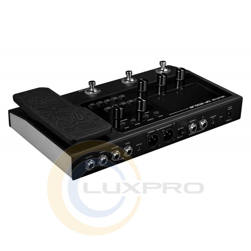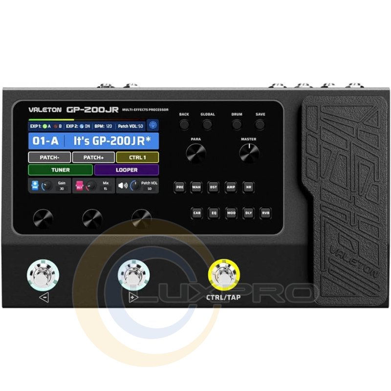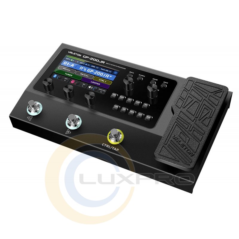 Унікальний вхід aux безпосередньо передає підключені аудіосигнали USB. Оснащений тією ж бібліотекою ефектів, що й GP-200, яка поєднує 140 легендарних підсилювачів та симуляторів кабінетів, понад 100 відомих педалей ефектів та 20 заводських слотів для ІR-кабінетів, GP-200JR не жертвує якістю звучання. Кнопки модулів допомагають вводити/виводити та вмикати/вимикати модулі ефектів, ручки швидкого доступу додають персоналізацію в кожен пресет.