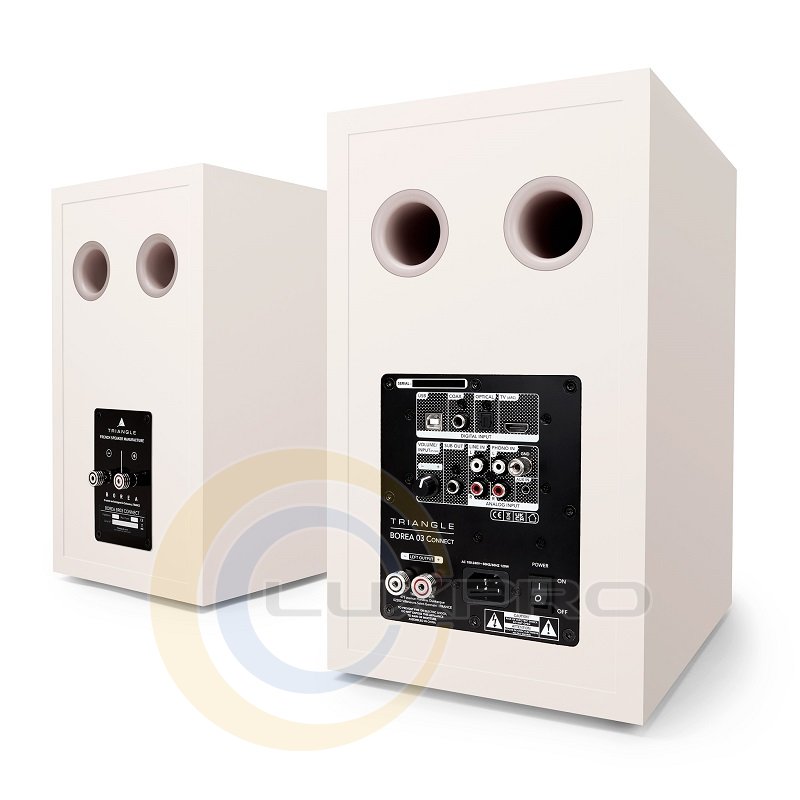 Корпуси колонок виконані з деревоволокнистих панелей високої щільності HDF та оснащені фірмовою системою гасіння вібрацій DVAS. Завдяки цьому Triangle Borea Active BR03 Connect звучать чисто та не забарвлено на високій гучності. Модель має двосмугову конфігурацію та оснащена 165 мм басовиком, а також твітером з м'яким куполом діаметром 25 мм. Він оснащений невеликим рупором із фазовою заглушкою – таке оформлення отримало назву EFS та забезпечує додаткове підвищення якості звучання на високих частотах. Потужність вбудованих підсилювачів Triangle Borea Active BR03 Connect складає 60 Вт. Підсилювачі працюють у класі D, що забезпечує їх високу ефективність і стабільність навіть при тривалому прослуховуванні музики при підвищеній потужності, що віддається.