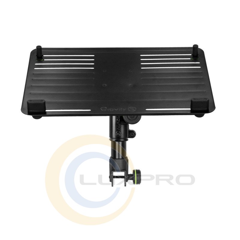Полиця для ноутбука FT 01 LT TB плавно регулюється по висоті, повертається на 360 ° і нахиляється на 15 °. Завдяки регульованим утримуючим штифтам підставка надійно утримує ноутбук, планшет, консоль ефектів або мікшерний пульт навіть при нахилі, а завдяки складній системі направляючих на пульті діджея (FT 01) підставка для ноутбука також можна переміщати горизонтально.
