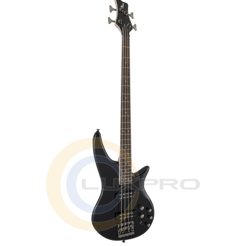 Бас-гітара Jackson JS3S Spectra LR з 34" мензурою в кольорі Gloss Black з чорною нікелевою фурнітурою та унікальною чорною головою грифа Jackson 2x2 зі стриманим логотипом J.