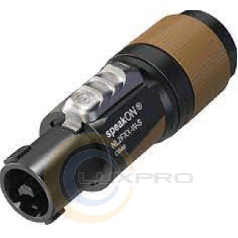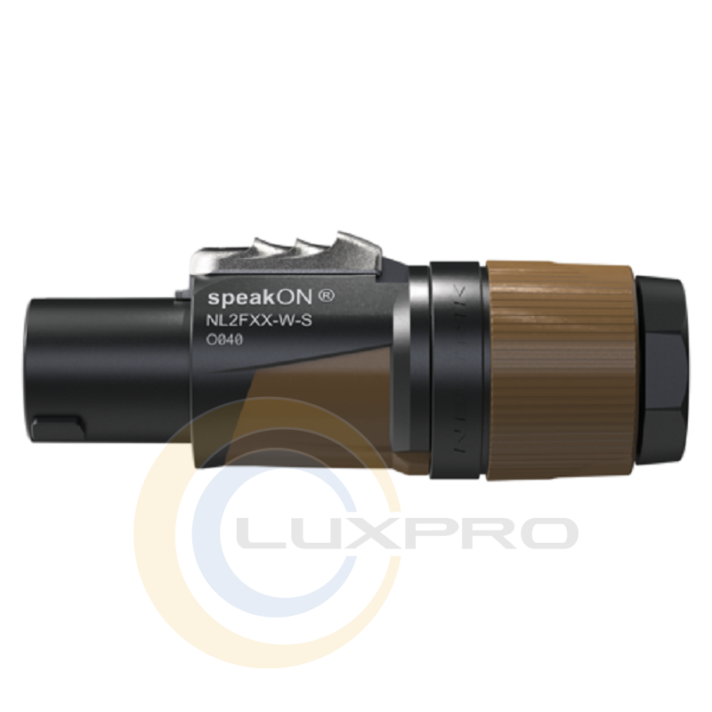 NL2FXX-W-S - роз'єм є стандартними роз'ємами для підключення підсилювача/гучномовця. 2-х і 4-х контактні кабельні роз'єми SpeakON були спеціально розроблені для сильноточних навантажень, які зустрічаються в області звукопідсилення та гучного зв'язку. Кабельні з'єднувачі SpeakON у міцному пластиковому корпусі оснащені традиційним фіксатором цанги Neutrik, унікальною системою блокування та захищеними від дотику контактами.