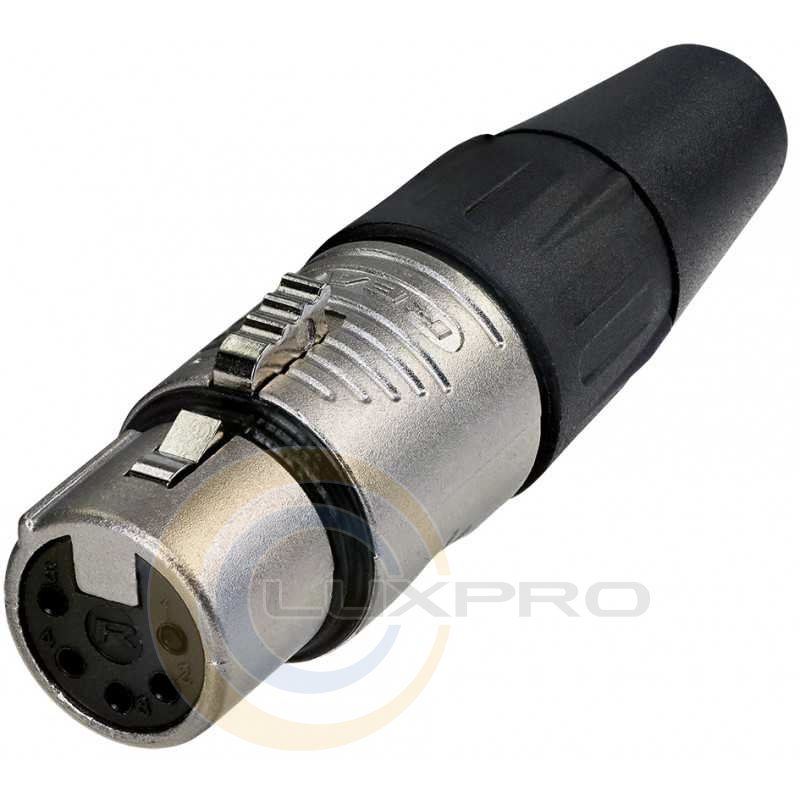 RC5F - роз'єм "мама" 5-контактний, фланець типу D, хромований корпус, срібні контакти під паяння, пластиковий пакет.