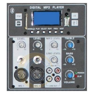 2-полосная активная акустическая система, которая имеет на борту интегрированный MP3 плеер, воспроизводящий музыку с карт памяти SD/MMC и USB устройств и FM радиоприемник.Плеер имеет интуитивно понятное кнопочное управление на задней панели и дисплей, отображающий основную информацию, а также средства управления (MODE, PLAY, SELECT, REPT, PREV, NEXT). На задней панели расположены слот для карты памяти SD/MMC, USB порт, Bluetooth и инфракрасный порт (IR).Номинальная мощность 200Вт. Акустическая система оборудована усилителем АВ класса. Динамик: 12" объемом 1,2л с катушкой 2". Титановый ВЧ-компрессионный драйвер - 34мм.В комплект входит пульт дистанционного управления.Система дает возможность одновременного подключения двух микрофонов. На задней панели расположены два микрофонных XLR входа и два линейных входа на 1/4” jack с независимым контролем уровня сигнала для каждого, RCA входы и выходы с регуляторов уровня сигнала и регулятор громкости MP3 плеера.Акустическая система оборудована двухполосным эквалайзером и общим регулятором громкости (MASTER), около которого расположены также светодиодные индикаторы CLIP и POWER.Корпус из ABS-пластика делает E.12 BLU прочной и долговечной в условиях интенсивного использования. По бокам и сверху корпуса размещены удобные ручки переноски, а снизу акустическая система имеет колеса, облегчающие ее транспортировку.Данная акустическая система идеально подойдет для использования на вечеринках, свадьбах и любых мероприятиях, проходящих в помещениях площадью до 100 кв.м.Особенности:- встроенные MP3 плеер и FM радиоприемник;