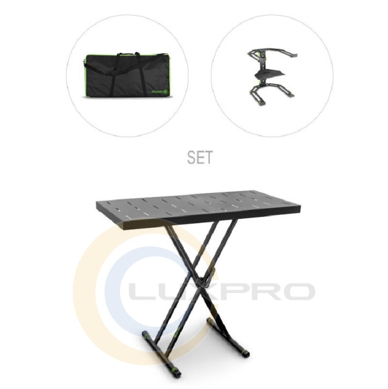 Як музикант або ді-джей важливо, щоб усі ваші інструменти, обладнання та аксесуари були компактними, надійно упакованими та легкими для перевезення у фургоні під час подорожей. Gravity® Rapid Desk Set 2 поєднує перевірений та стабільний KSX 2 RD з не менш перевіреною складною підставкою для ноутбука LTS 01 B та сумкою для транспортування BG X2 RDB.