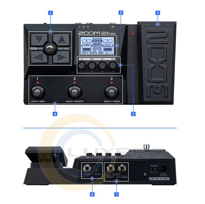 Нові перемикачі Zoom з перехресною навігацією допоможуть вам керувати педаллю, використовуючи лише ноги, дозволяючи виконувати налаштування "на льоту". Крім того, 4 поворотні енкодери дозволяють швидко змінювати параметри ефектів і налаштування виходу.