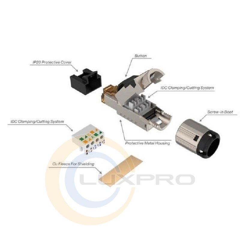 Польовий роз'єм CAT6A, повністю екранований, з захисним кожухом, що загвинчується, підключення без використання інструментів. Високоякісні з'єднувачі забезпечують надійність та стабільність системи завдяки процесу збирання із запресуванням.