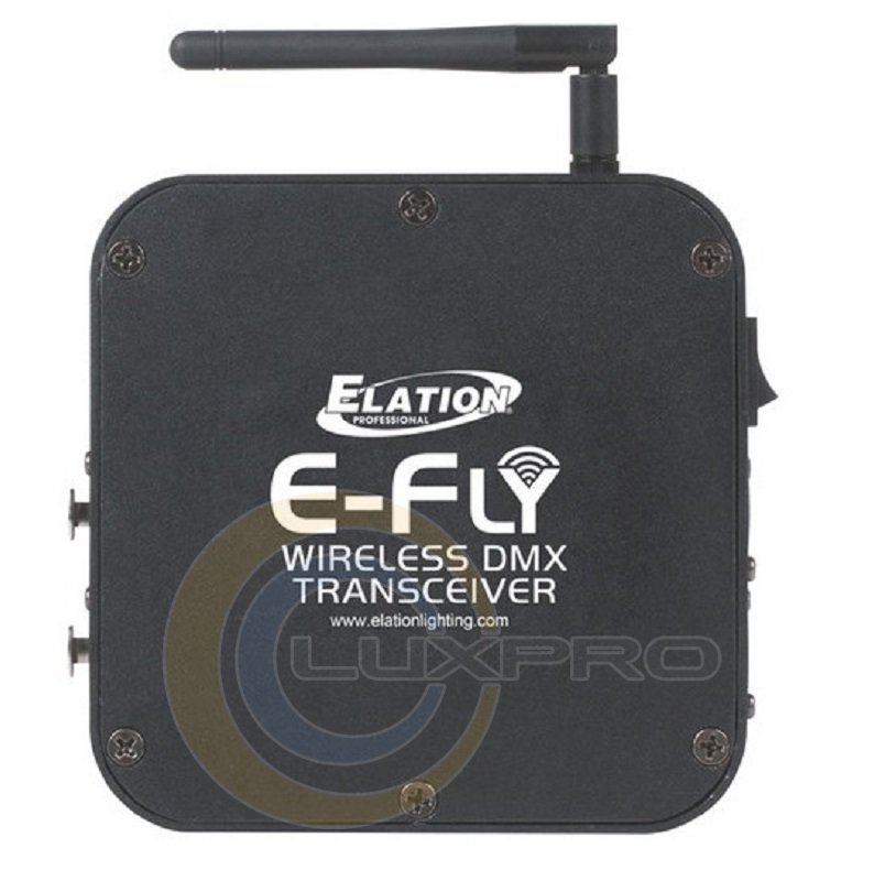 Бездротовий DMX передавач E-Fly Transceiver. Підключений до контролера DMX, трансівер E-FLY™ забезпечуватиме постійний та надійний бездротовий сигнал DMX на відстані до 2500 футів (762 м) для інших продуктів Elation E-FLY™. Бездротова частота 2,4 ГГц співіснуватиме у завантажених радіочастотних середовищах поряд з такими технологіями, як Bluetooth та Wi-Fi.