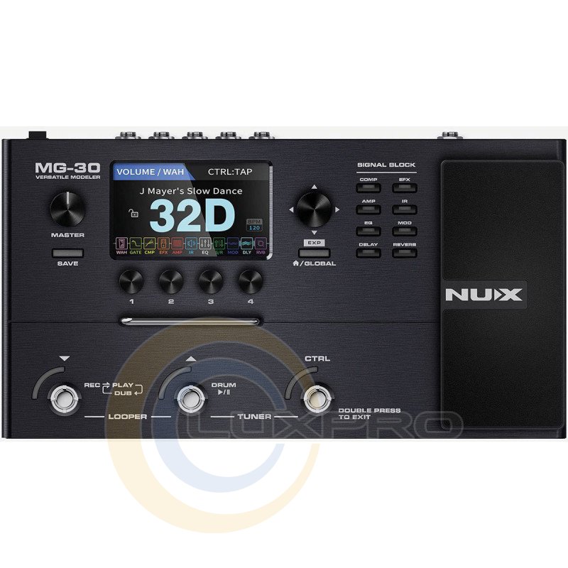 Компанія Nux створила культову Solid Studio, яка була відома своїми імпульсами, що чудово звучать, кабінетами з 8 легендарними мікрофонами і 3 мікрофонними позиціями... тому Nux вирішили включити ці улюблені IR в MG-30. І, так, туди також додані басові та акустичні імпульсні відгуки. Ви також можете завантажити інші IR. Це означає, що ви можете завантажити 32 х 4 = 128 IR в MG-30.