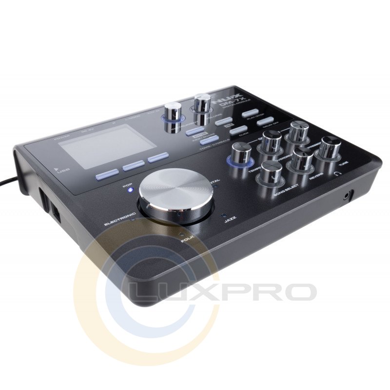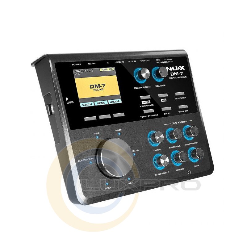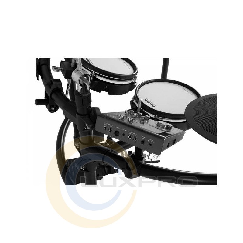 DM-7X - ударна установка. Педи малого барабана NDP-10 та томів NDP-8 оснащені технологією Dual-Triggering (пластик та обід) та сітчастими пластиками від Remo, що забезпечує точне спрацювання та реалістичні тактильні відчуття. Зміна тембру відбувається залежно від місця та сили удару. Надійна вигнута форма стійки забезпечує просту та швидку установку та елегантний зовнішній вигляд.
