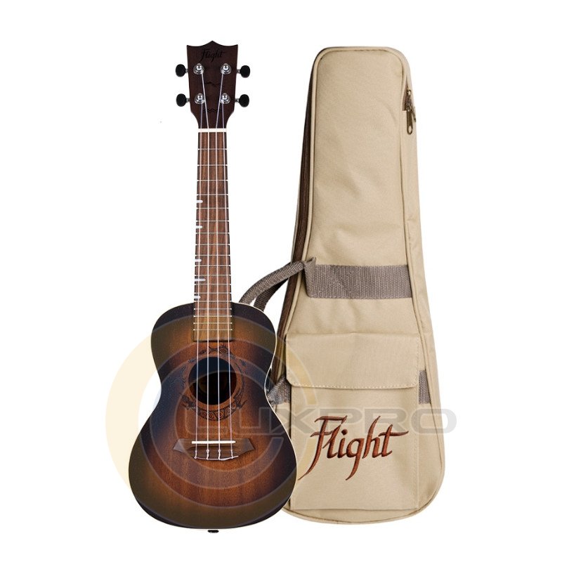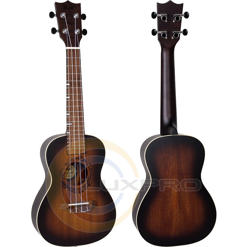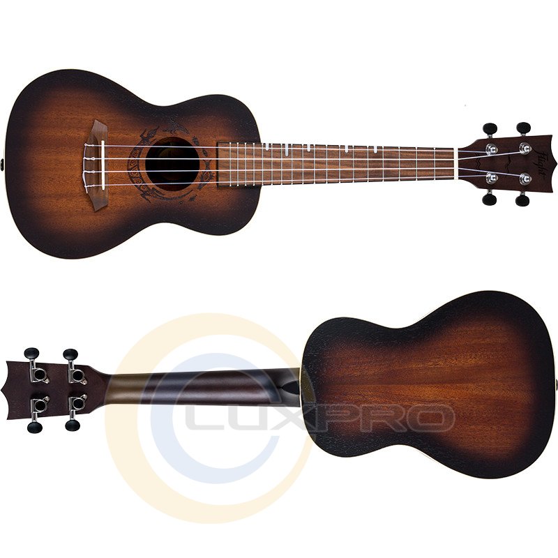 Гриф та накладка на гриф виконані з деревини африканського окоуму та горіха. Ця чудова комбінація гарантує стабільне звучання та чисте інтонування по всій довжині грифу. Гриф дуже приємно тримати в руках і в той же час він чудово виглядає! Звичайно, можна навчитися грати на укулелі і без використання ременя, але чому б не скористатися цією можливістю? Ремінець полегшує підтримку вашій укулеле, так що ви можете грати на ній годинами. Це також дозволить тримати ваші руки вільними у перерві між піснями. Ми дбаємо про тих, хто грає на Flight, тому ми стали встановлювати стрепло на всіх наших укулеле.