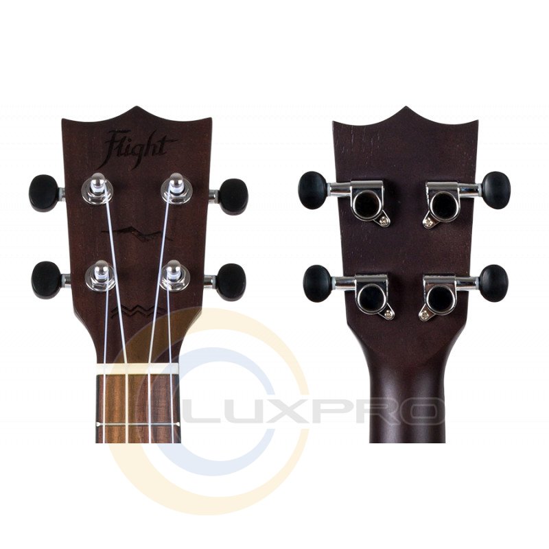 Верхній та нижній поріжки, можливо, і не надто великі елементи укулеле, але вони безпосередньо впливають на чистоту звучання інструменту. Поріжки цієї укулеле зроблені з кістки (не із пластику). Тільки одна ця деталь робить цю укулеле справді унікальною. Дизайн головки грифа – невід'ємний елемент укулеле Flight. У всіх наших укулеле головка грифа ретельно продумана і в даної моделі оснащена колками закритого типу, які чудово тримають лад.
