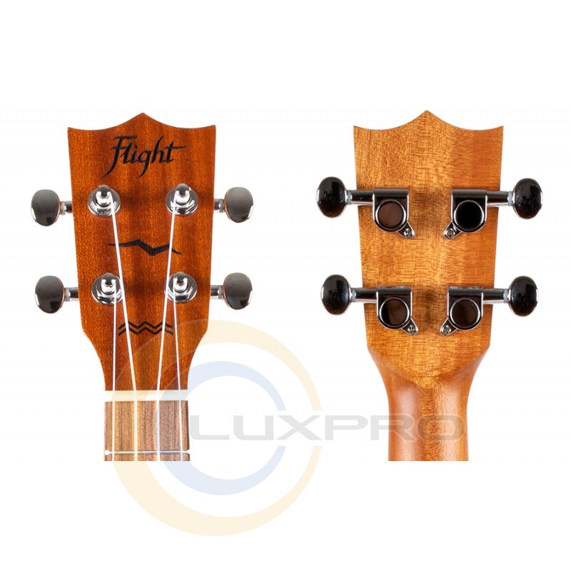 Верхній та нижній поріжки, можливо, і не великі елементи укулеле, але вони безпосередньо впливають на чистоту звучання інструменту. Поріжки цієї укулеле зроблені з кістки (не із пластику). Тільки одна така деталь робить цю укулеле справді унікальною. Дизайн головки грифа – невід'ємний елемент укулеле Flight. Ретельно продумана головка грифа на всіх наших укулеле оснащена колками відкритого типу, які чудово тримають лад.