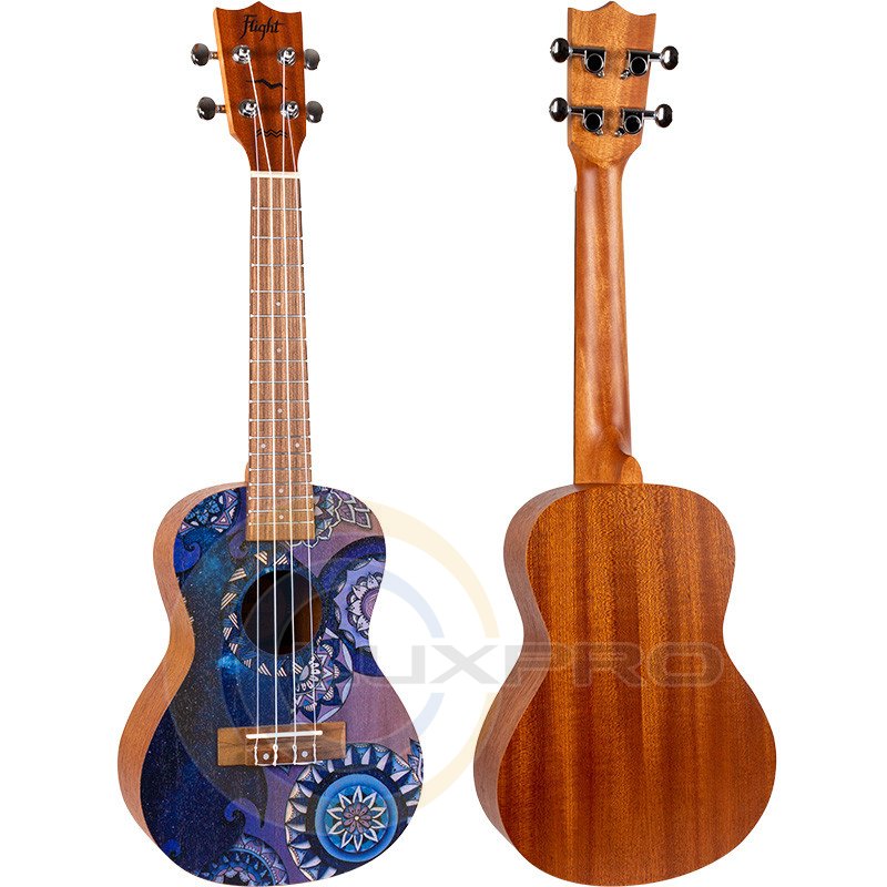 AUC33 Stardust, Concert - укулеле концерт з ламінату махагоні з дизайном, надихнути нічне небо. Укулеле Flight AUC-33 Stardust - це чудова укулеле з ламінату махагоні, але в ній є одна особливість: чудовий дизайн верхньої деки. Ми не вибирали легких шляхів для виготовлення цієї укулеле: вона грає і звучить так само добре, як виглядає.