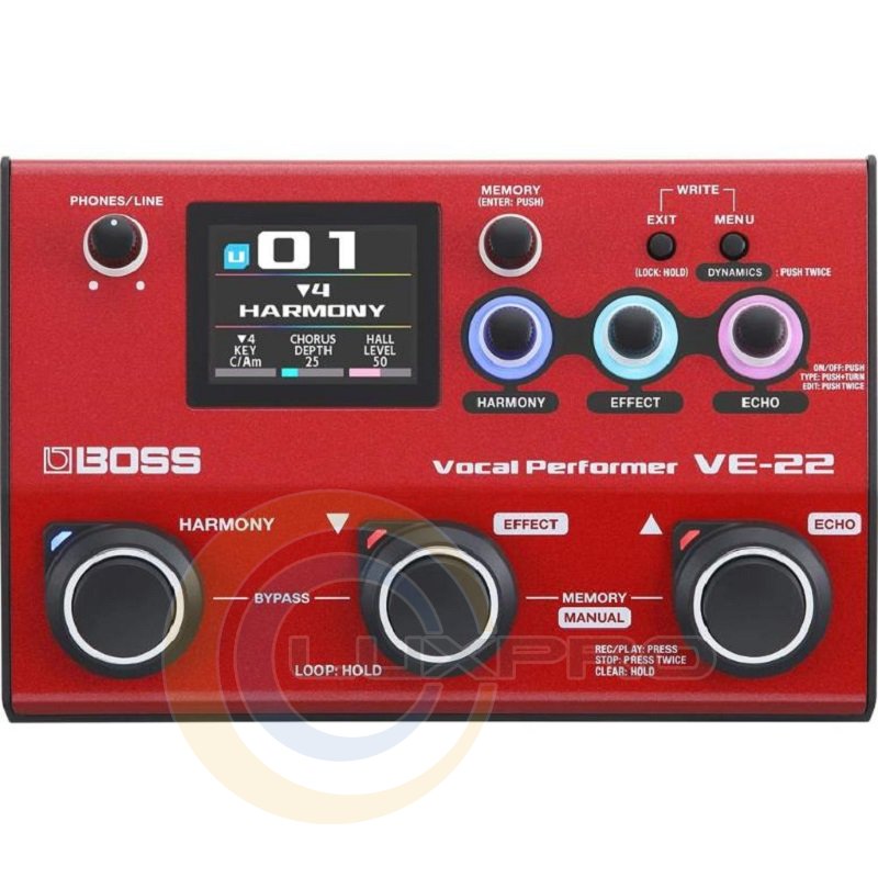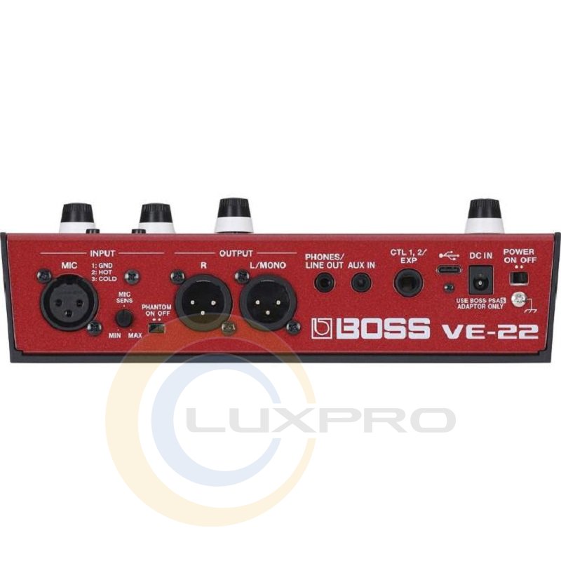 У VE-22 є все необхідне передачі високоякісного звуку на домашню PA-систему, сценічний підсилювач або рекордер. Є вхід XLR та вбудований підсилювач для професійного сценічного мікрофона, а також фантомне живлення для висококласних конденсаторних типів. Перемикач високого/низького посилення, ручка чутливості на задній панелі та вимірювач рівня дозволяють оптимізувати вхідний сигнал практично для будь-якого мікрофона. Compressor, EQ, de-esser та інші необхідні студійні функції також під рукою, готові підтримати будь-який виступ рівним, авторитетним звуком.