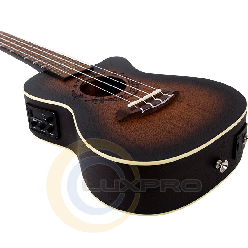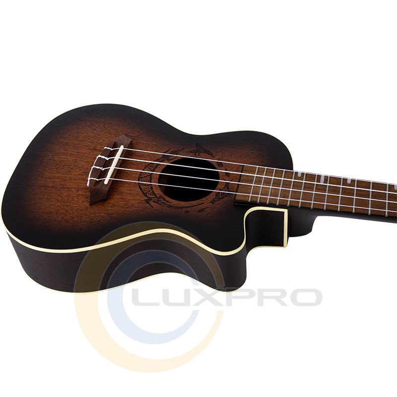 DUC380 CEQ Amber Concert - укулеле. Махагоні (червоне дерево) – матеріал, який здавна використовується для виробництва музичних інструментів. Він відомий своїм повним і чітким звуком, з густими низькими обертонами та гарною чутливістю до високих нот. Це дерево має високу еластичність, але разом з тим йому властива чудова міцність і стабільність, а значить, на відміну від інших порід дерев, ймовірність деформації інструменту мінімальна.