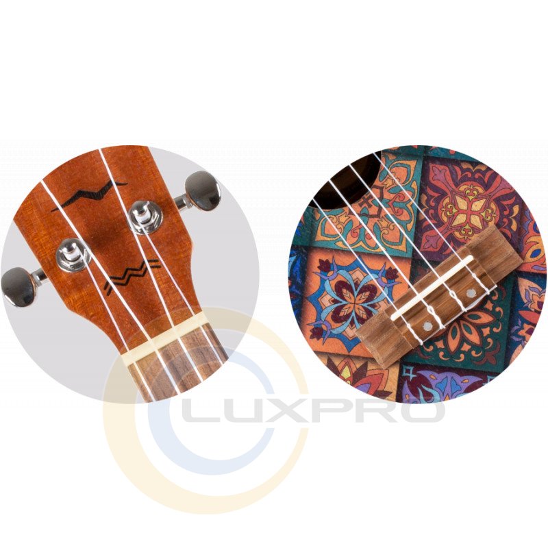 Верхній та нижній поріжки, можливо, і не великі елементи укулеле, але вони безпосередньо впливають на чистоту звучання інструменту. Поріжки цієї укулеле зроблені з кістки (не із пластику). Тільки одна така деталь робить цю укулеле справді унікальною. Дизайн головки грифа – невід'ємний елемент укулеле Flight. Ретельно продумана головка грифа на всіх наших укулеле оснащена колками відкритого типу, які чудово тримають лад.