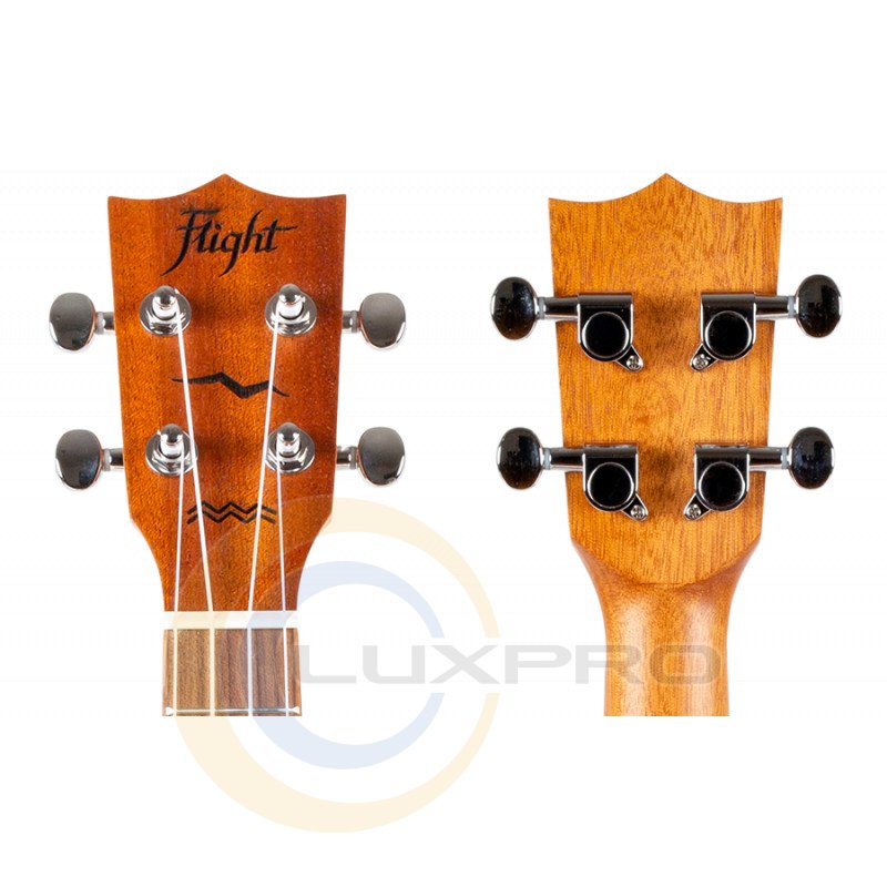 Верхній та нижній поріжки, можливо, і не великі елементи укулеле, але вони безпосередньо впливають на чистоту звучання інструменту. Поріжки цієї укулеле зроблені з кістки (не із пластику). Тільки одна така деталь робить цю укулеле справді унікальною. Дизайн головки грифа – невід'ємний елемент укулеле Flight. Ретельно продумана головка грифа на всіх наших укулеле оснащена колками відкритого типу, які чудово тримають лад.