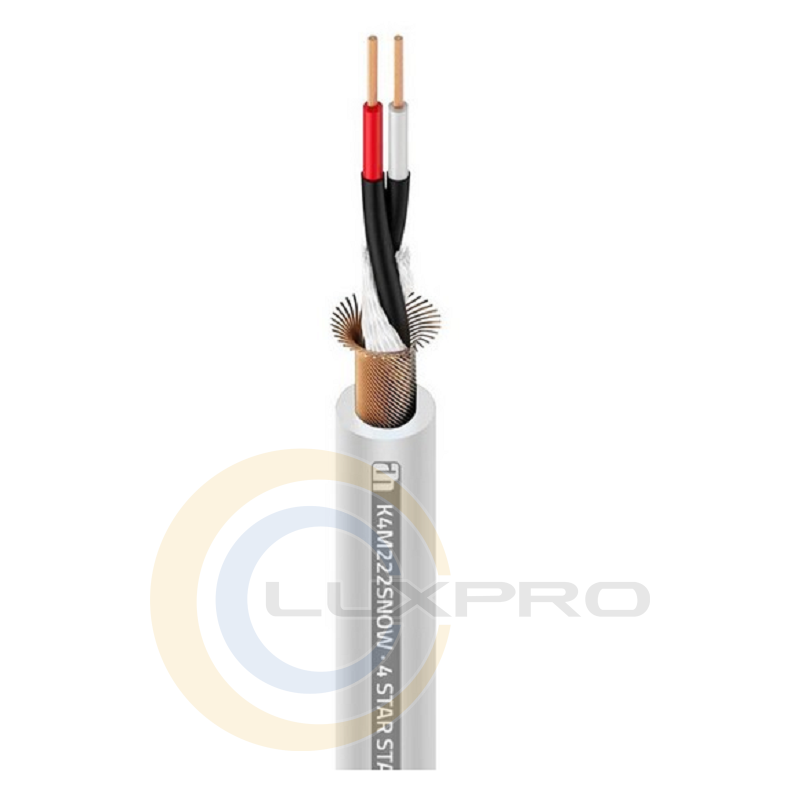 4 STAR M 222 SNOW із серії "Standard" - це високоякісний мікрофонний кабель для збалансованої передачі сигналів з низьким опором. Він відрізняється подвійним екрануванням (спіральний мідний екран плюс напівпровідник), який запобігає електромагнітним і високочастотним перешкодам і знижує шум при роботі, що забезпечує хорошу, безшумну передачу даних.
