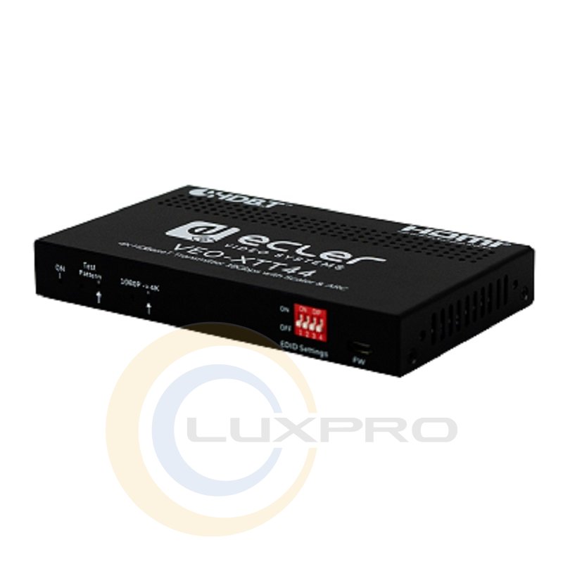 Подовжувачі підтримують роздільну здатність відеосигналу до 4K/UHD при частоті 60 Гц з дискретизацією кольоровості 4:4:4 та швидкість передачі даних HDMI до 18 Гбіт/с. Збільште вхідний сигнал FullHD до 4K. Двонаправлений PoH (живлення через HDBaseT) 4-контактний DIP-перемикач дозволяє керувати EDID за допомогою декількох параметрів, що настроюються. Включає деембедування звуку та підтримку ARC, двонаправлений ІЧ-порт та наскрізний порт RS-232. Генератор відеозображень включений для тестування під час установки.