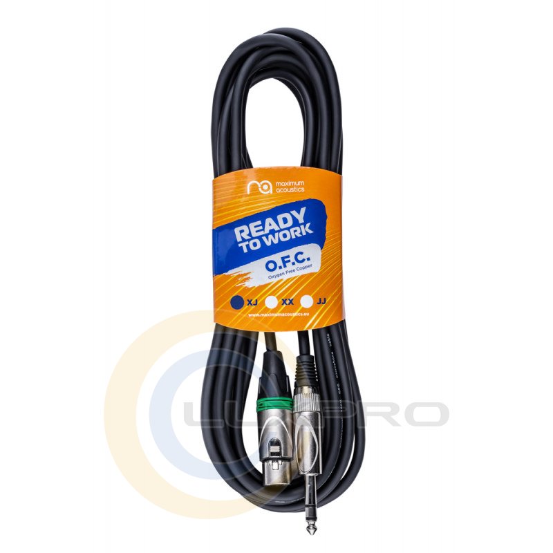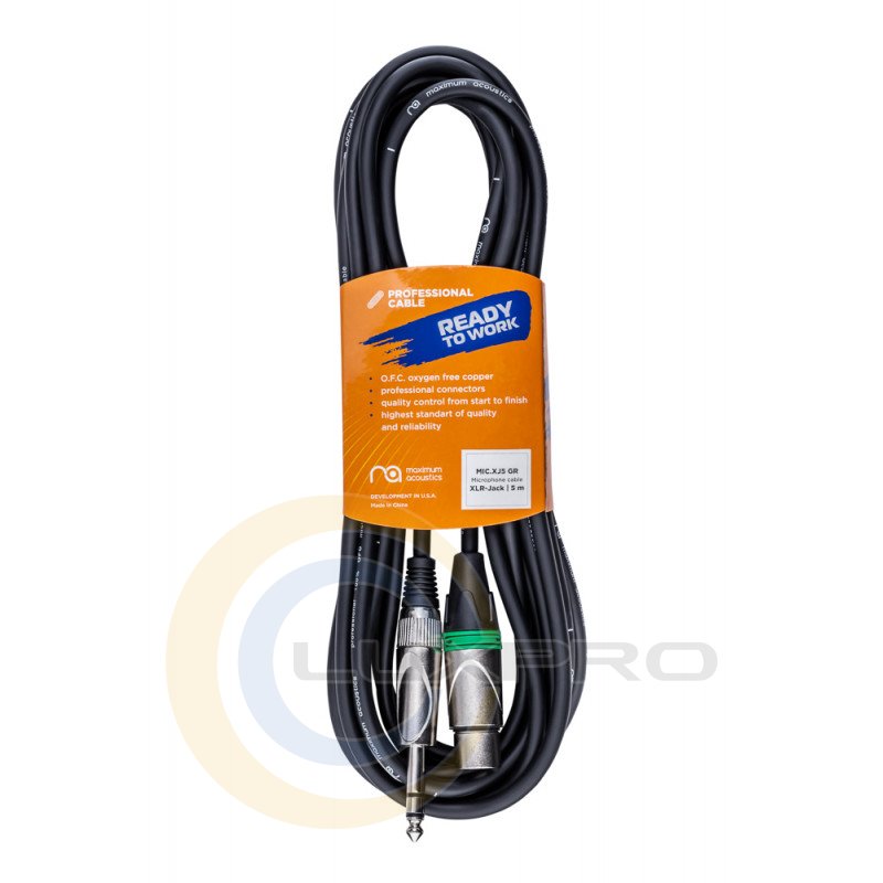 Професійний мікрофонний кабель від бренду Maximum Acoustics, виготовлений з 6 мм екранованого кабелю з використанням безкисневої міді (OFC) та оснащений конекторами Jack Stereo 6,3 мм - XLR-female. Дана модель має довжину кабелю 5 м. Колір кабелю чорний, а кільця маркувальні конекторів - зелені.
