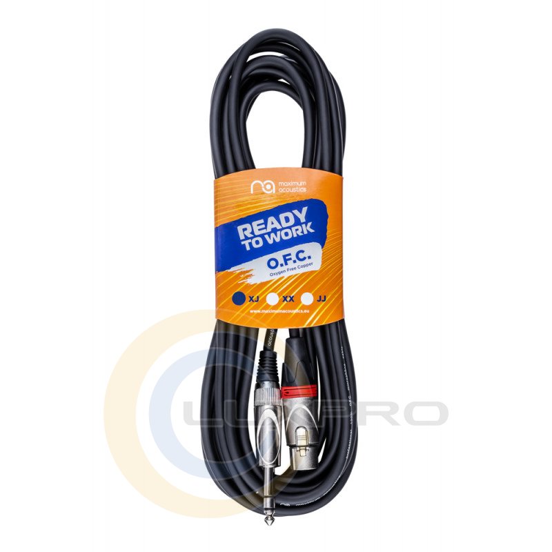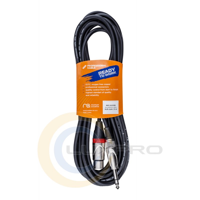 Професійний мікрофонний кабель від бренду Maximum Acoustics, виготовлений з 6 мм екранованого кабелю з використанням безкисневої міді (OFC) та оснащений конекторами Jack Stereo 6,3 мм - XLR-female. Дана модель має довжину кабелю 5 м. Колір кабелю чорний, а кільця маркувальні конекторів - червоні.