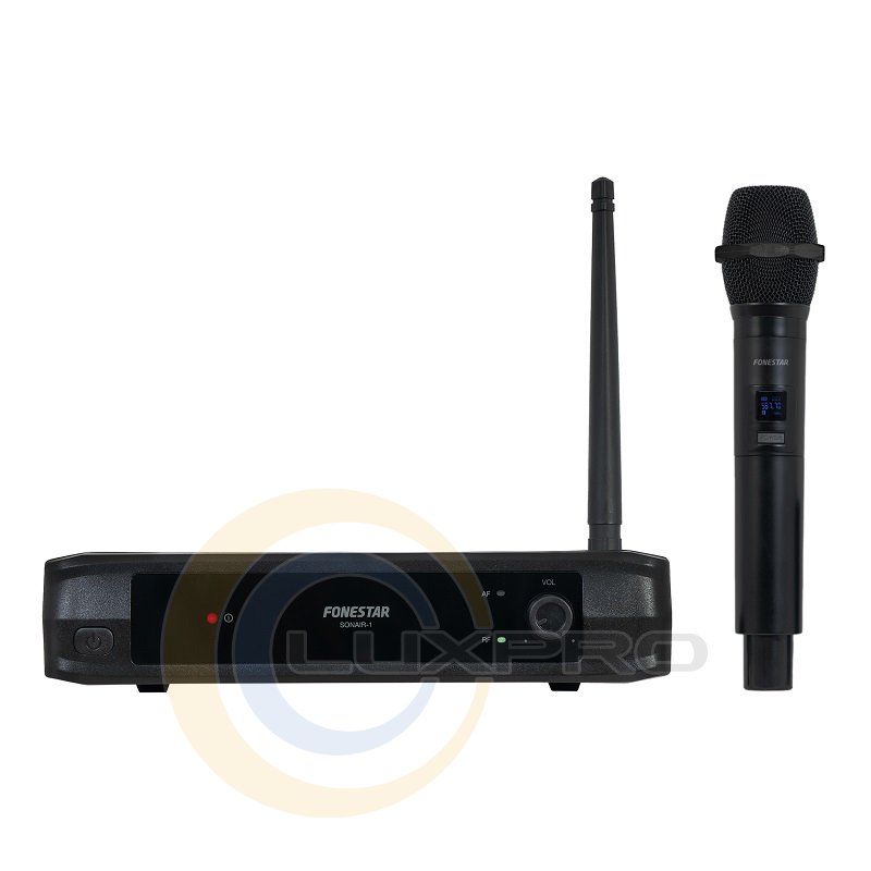 Радіосистема SONAIR-1M Мікрофон радіосистеми Fonestar SONAIR-1M відрізняється великою площею бездротового покриття та високою якістю звуку. У дизайні передавача використано інтегроване рішення для керування звуком та передачі сигналу, виконане на одному чипі. В його основі – DSP-аудіопроцесор та частотне керування PLL. У порівнянні з системами, що поєднують дискретні компоненти, ця система є значно стабільнішою та надійнішою.
