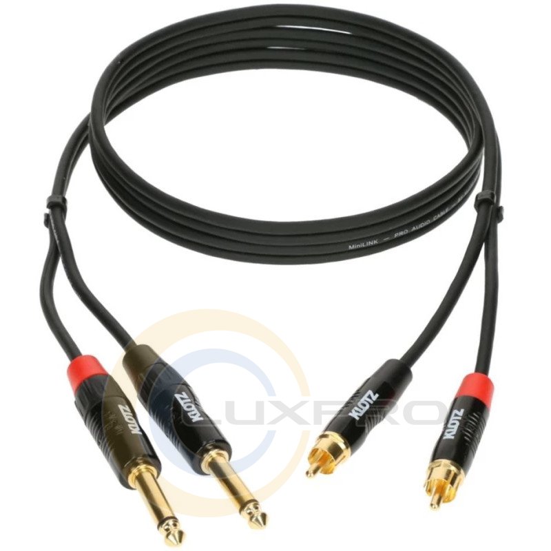 KLOTZ KT-CJ090 MINILINK PRO TWIN CABLE BLACK - комутаційний кабель, який володіє міцною та гнучкою зовнішньою оболонкою. Має перетин 0.22 мм і конструкцію zipcord. Кабель оснащений позолоченими контактами, а конектори 2х Jack на 2х RCA виготовлені з міді.
